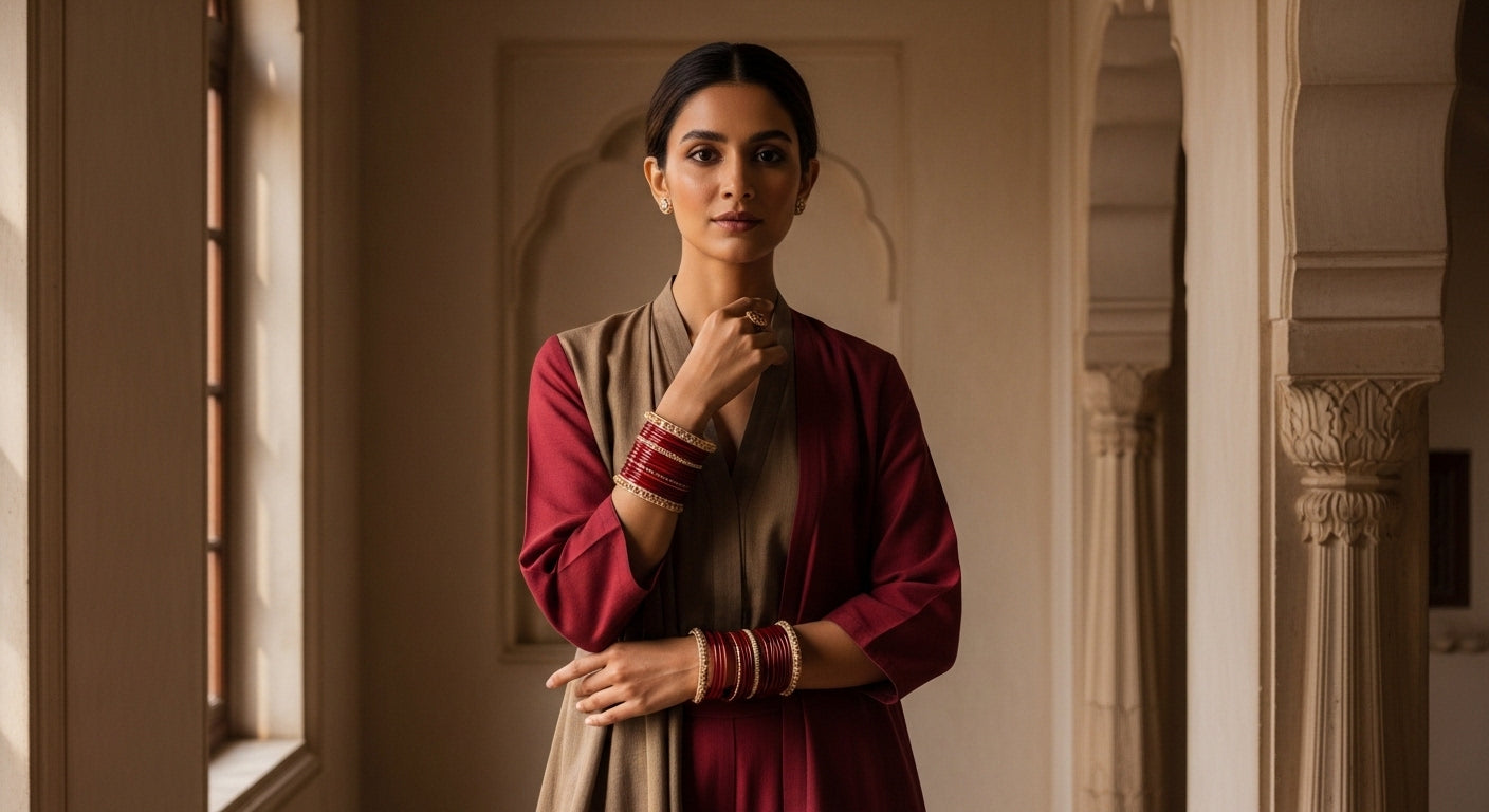 Shrikaa celebrates the grace of every woman through bangles that look royal yet feel accessible. Each piece is thoughtfully crafted to bring together traditional artistry and modern elegance — designed for the woman who carries herself with quiet confidence.